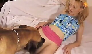 hottie was licked from head to toe by a huge dog and then fucked in all the slits
